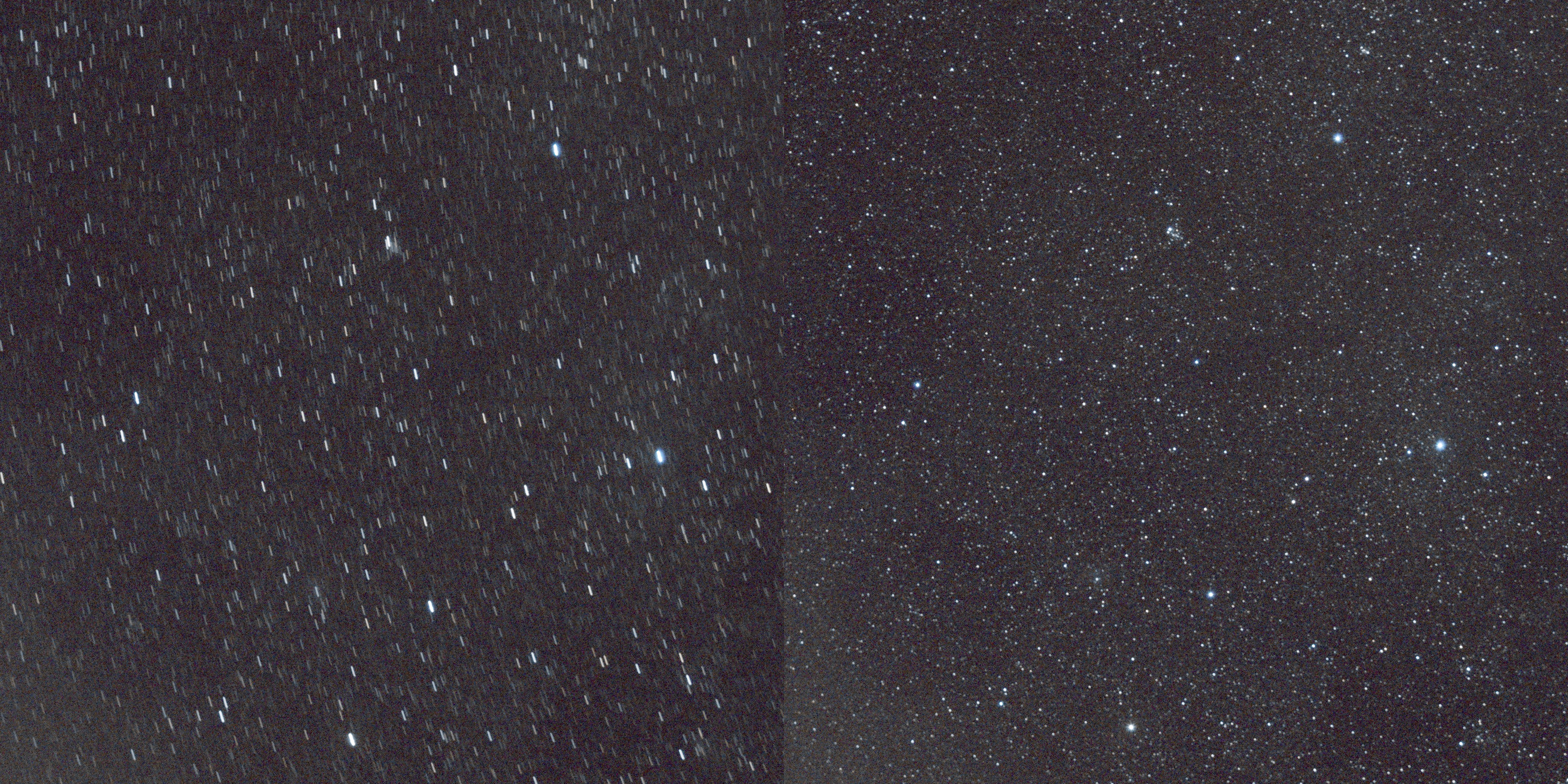 Here’s a comparison between a shot with the exposure set too long vs. a shot that’s “dialed in.” This is a processed image, so it has far more definition and brightness than what you’ll see in your camera preview.
