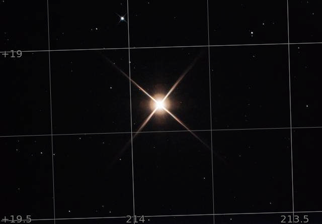 The brightest star in the northern celestial hemisphere, Arcturus is 25 times the size of the sun and 170 times as bright.