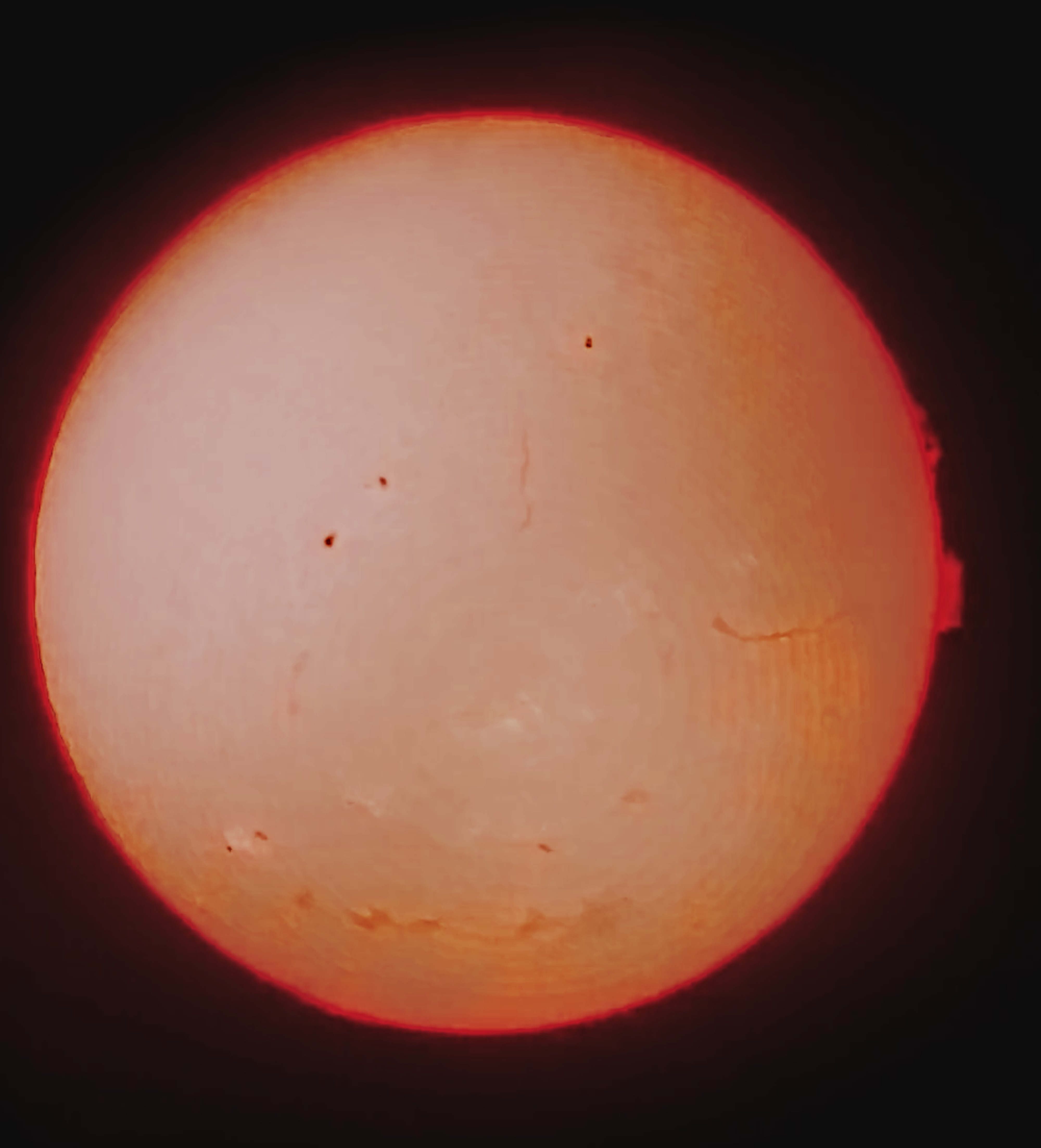 First light! I'm still working out the best way to image (this is a cellphone picture) but the Coronado PST I just received is amazing! A dedicated hydrogen-alpha solar scope and the images in real life are stunning!