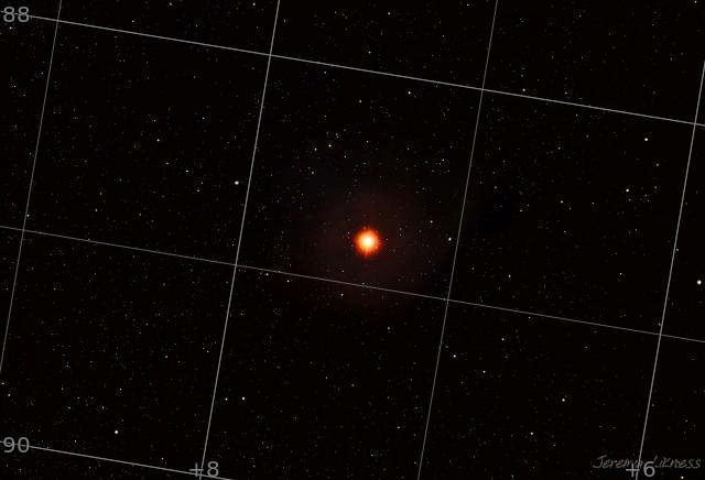 This massive beacon in the night sky on Orion's 'shoulder' is a red supergiant with a mass 10 - 20 times that of our own sun. For comparison, if you exchanged the sun for Betelgeuse, the latter would swallow everything from Mercury through Mars to the asteroid belt. Most astronomers agree it is close to supernova +/- 100,000 years.