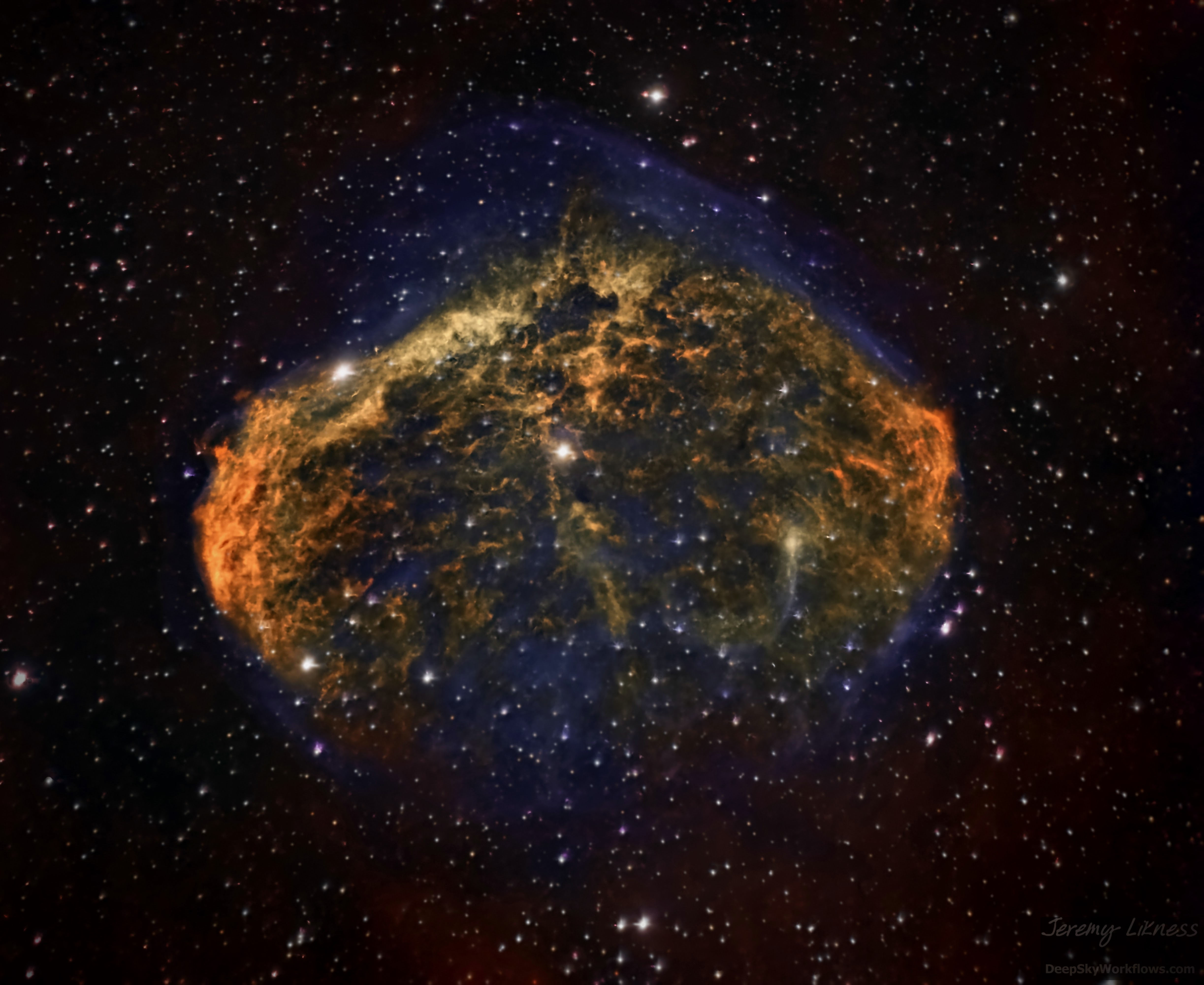 The vastness of space displaced in the space / Of a nebulous brain with an invisible face / Both explosion and implosion as the stellar winds blow / From a Wolf-Rayet star with a nuclear glow / Its membrane stretched thin: what will the fate / Be of this structure named NGC6 triple-8?
