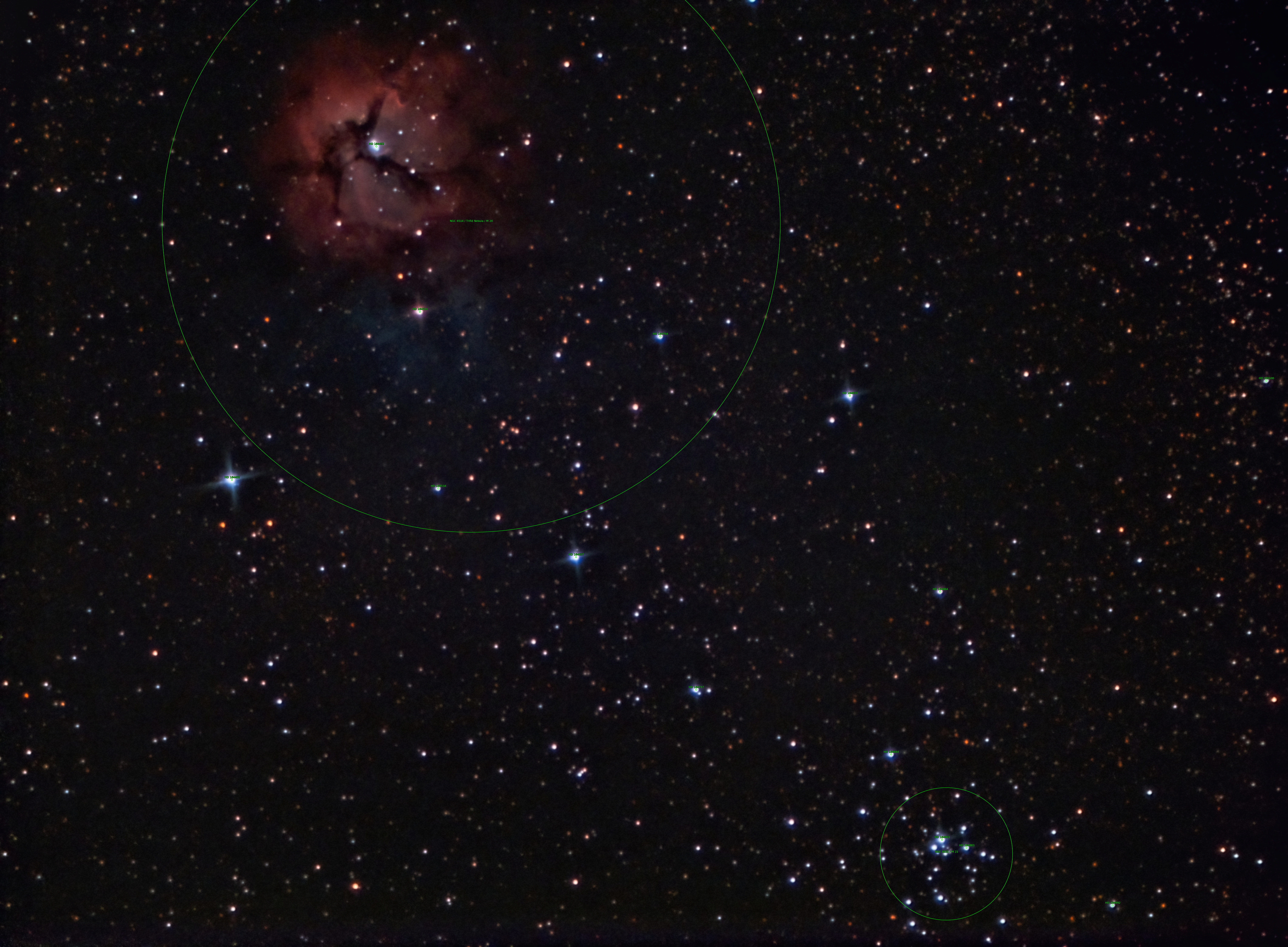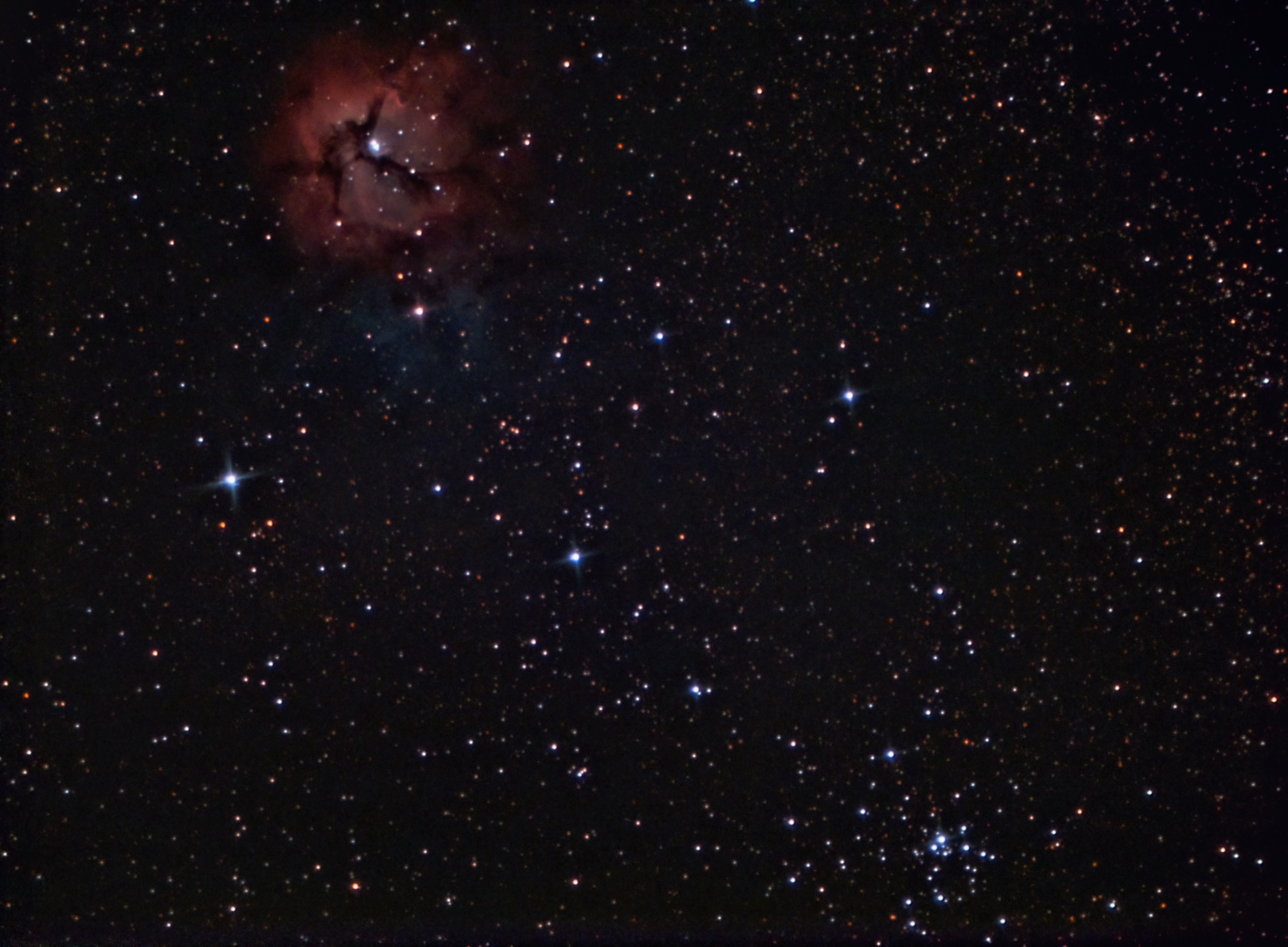 This is a specially framed capture to grab two Messier objects, one of which is a cluster, reflection nebula, emission nebula, and dark nebula all at the same time.