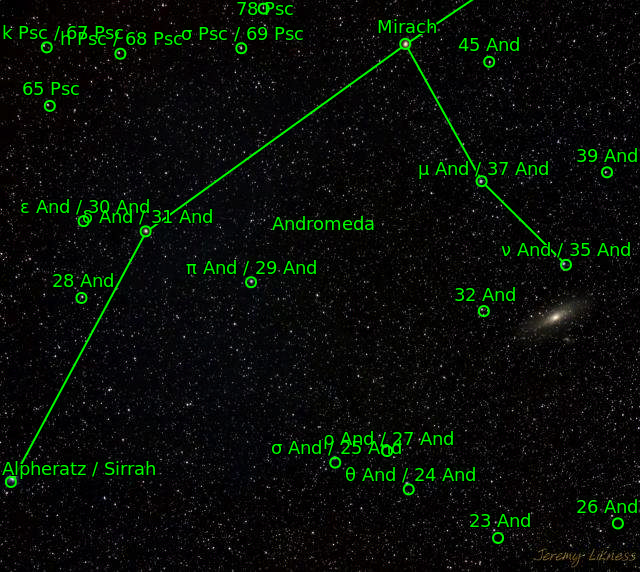 Anticipating Andromeda. This is the time of year that M31, the Andromeda Galaxy, begins to appear for longer periods of time. I've done some fun shoots in the past, but this year I feel like it's time to go for a magnum opus photo (for me, personally) and I decided to practice some shots. Those are just practice shots, so I won't be posting them, but I did have my Sony Alpha 6300 ride shotgun on the imaging runs. It snapped this photo of the bright stars that define the Andromeda Constellation chasing the galaxy off the edge of the frame. This is 10 2-minute exposures.