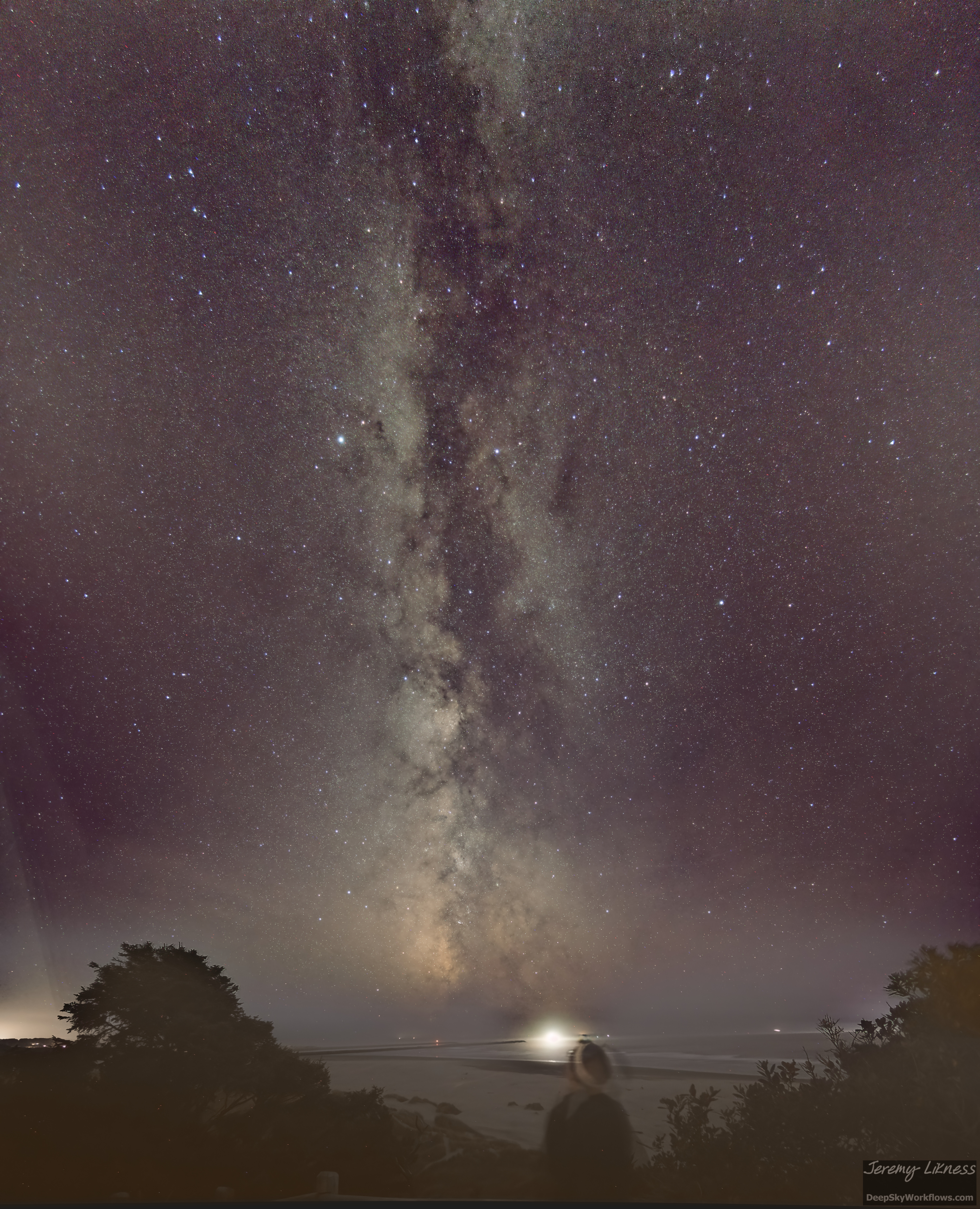 Was surprised to be able to see the Milky Way with my naked eye at Yaquina Bay State Park, so I took this selfie and combined it in a mosaic with shots of the higher sky to create this 'selfie.'