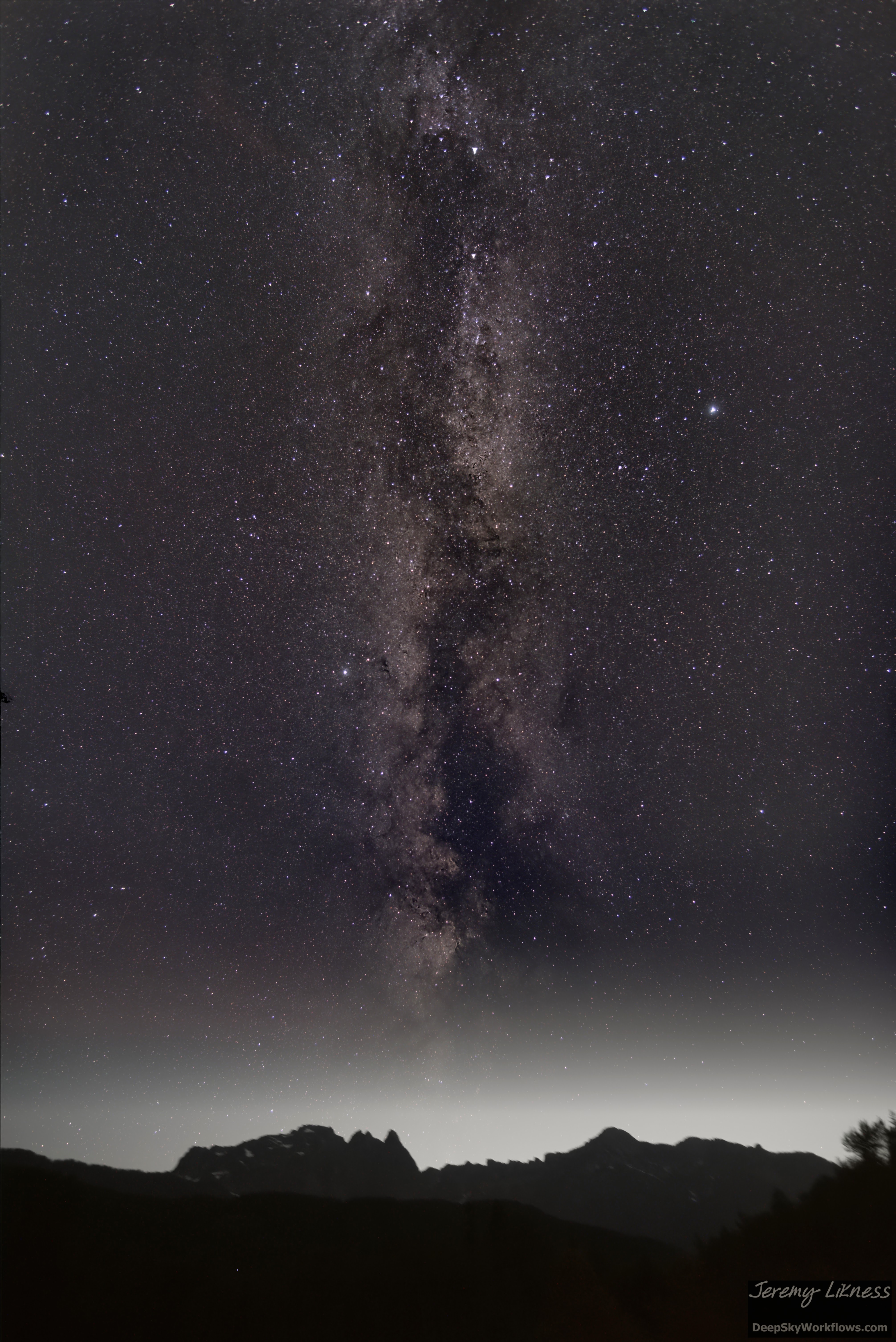 Eventually, the Milky Way ended up nearly vertical above the mountain ridge.