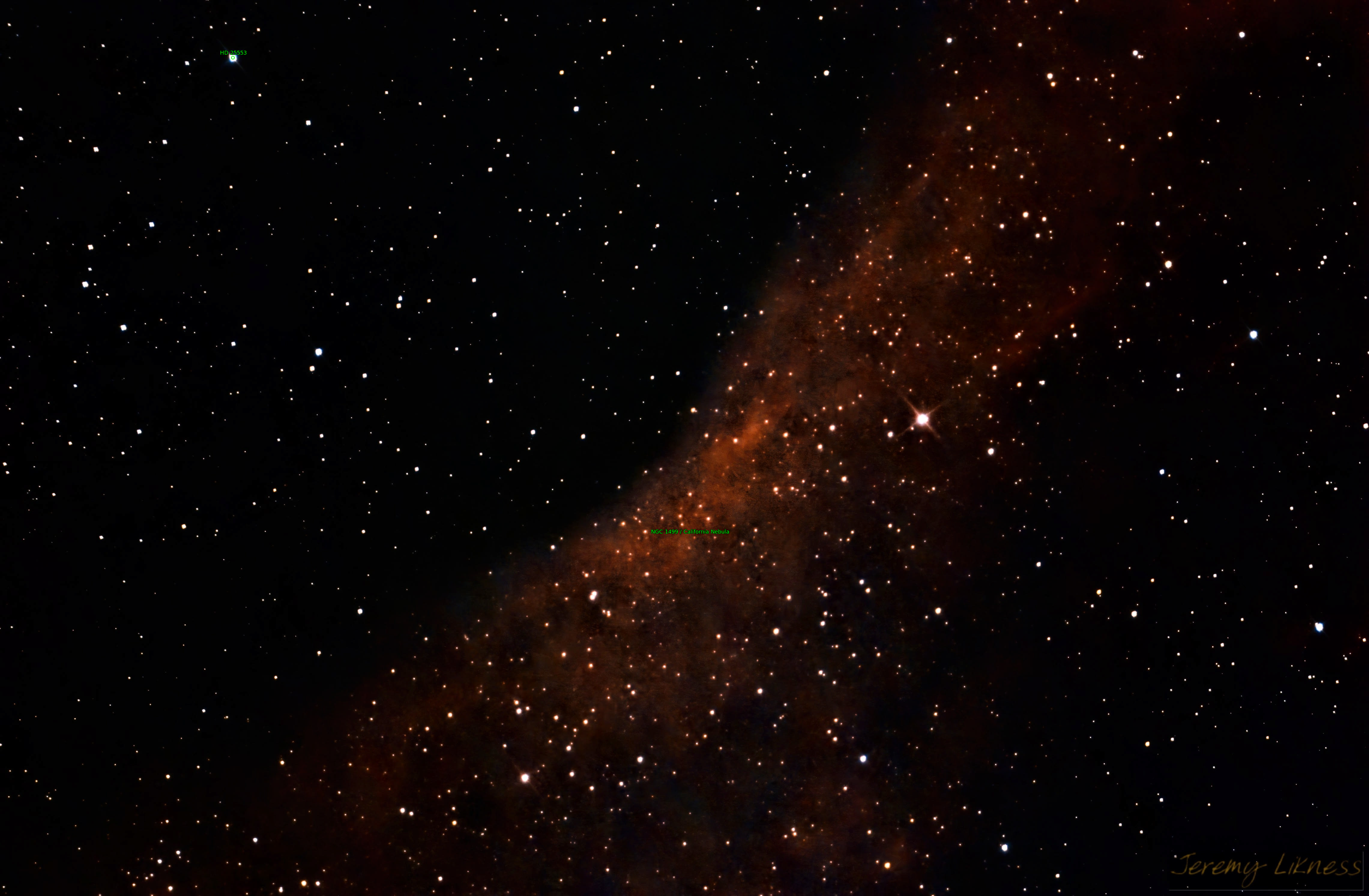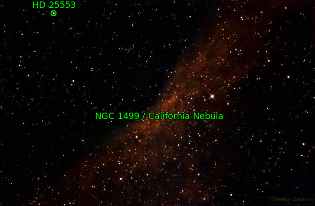 This picture is just a small part of the California-shaped NGC1499, a faint nebula that requires lots of exposure and/or narrowband filters to truly appreciate.