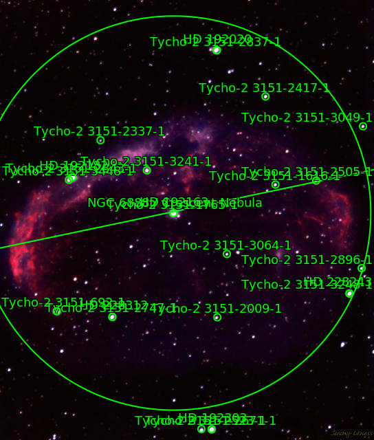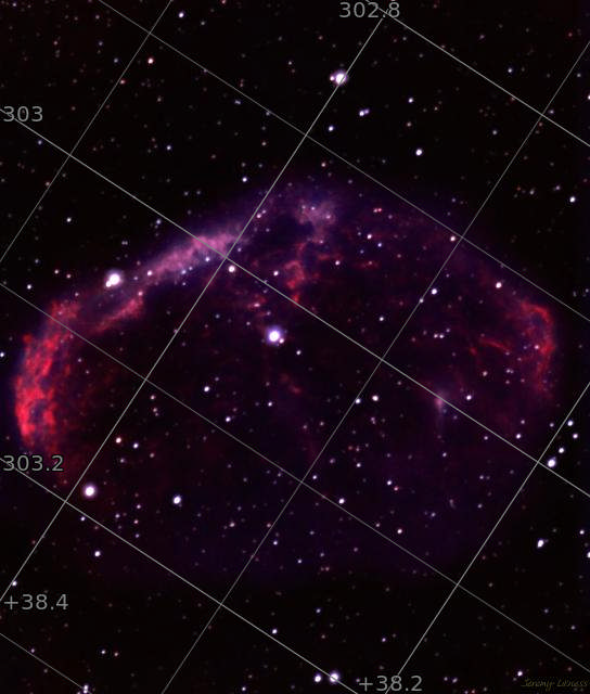 A close-up of the Crescent Nebula. NGC6888 is the expanding shell of an ancient supernova with supercharged dust particles that glow from the energy of nearby stars.