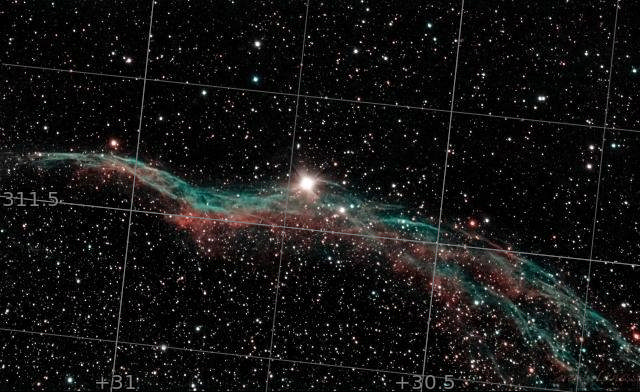 A brilliant star caps the veil in this delicate and beautiful nebula.