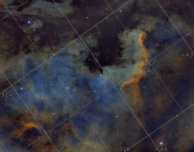 It's big, it's bright, it's colorful and complex. What's not to love about the North America Nebula? Here's a focus in on the Cygnus Wall brought to you by five-minute exposures in red, green, blue, sulfur, hydrogen, and oxygen.