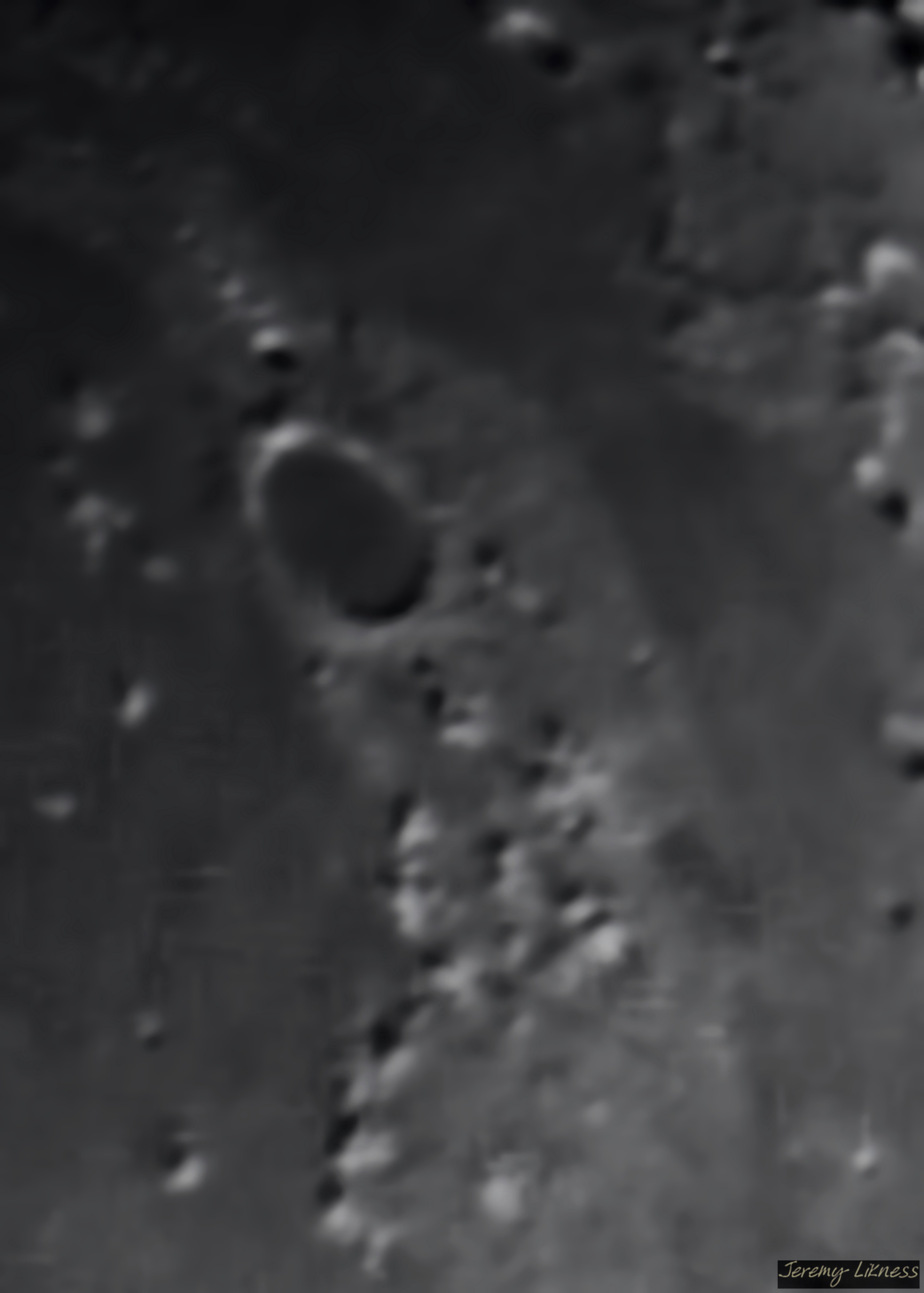 A close up of prominent crater Plato.