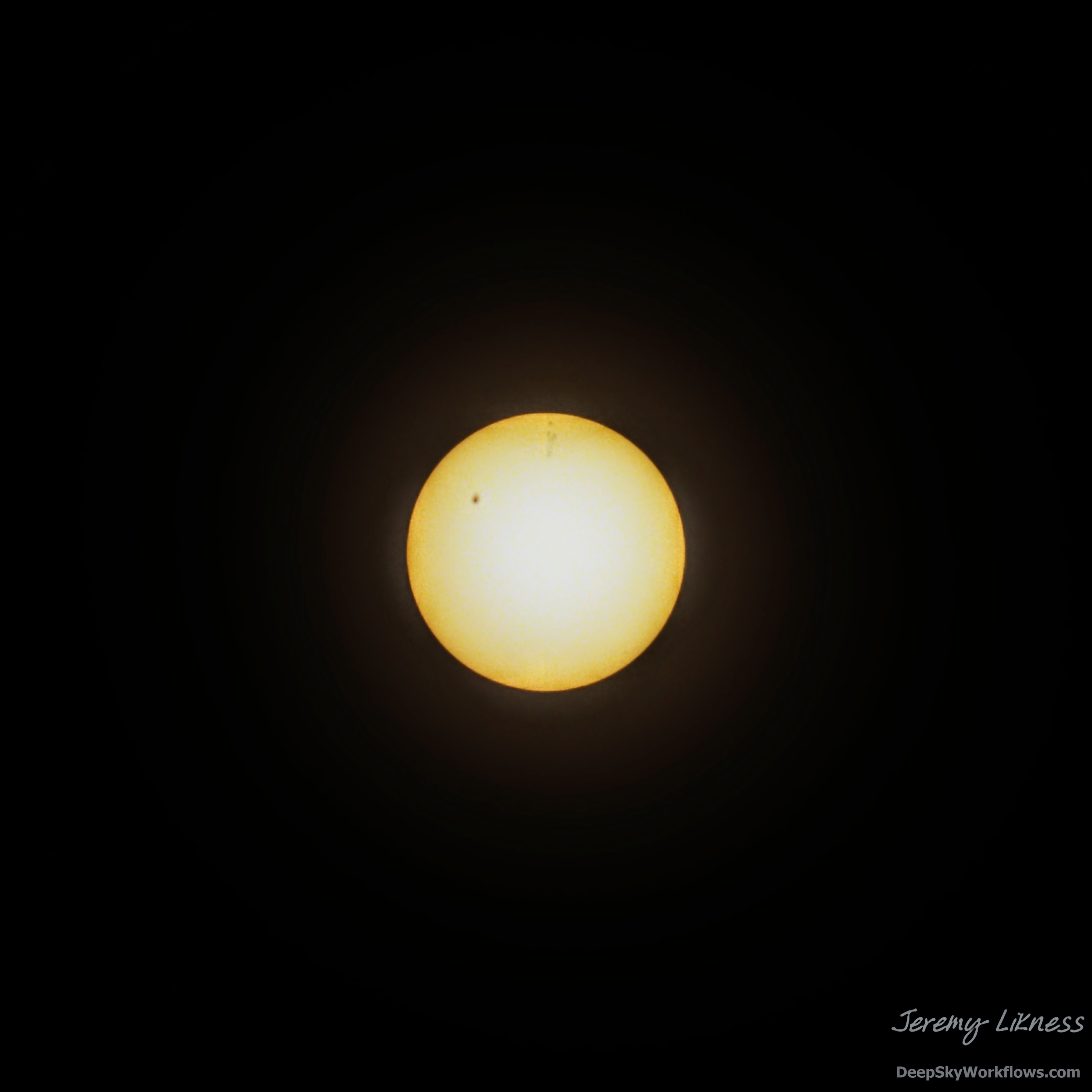 My first ever solar observation using an eclipse filter with my 135mm lens. I successfully captured the sunspots!